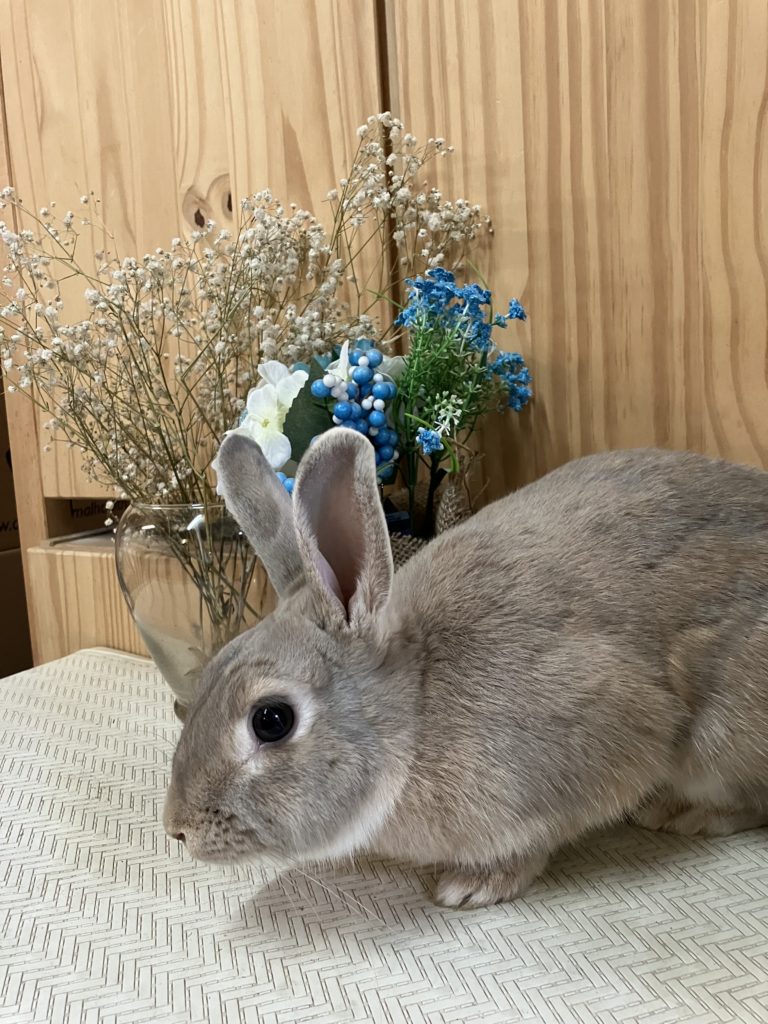 Estimated date of birth 10th June 2025, she has only known a shelter life for most of her short life and would love a quieter home where she could blossom. She’s an active, curious little rabbit who enjoys a variety of greens and never turns down a treat.