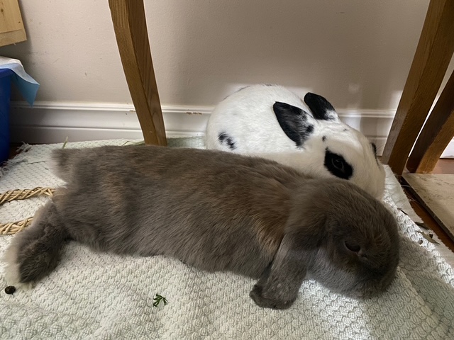 They’re both very good at using their litter box. No accidents yet. We love them already. Such a pleasure to foster them. They are free roaming in the room that we put them in. We only put the fence at the door so they can’t go past it for now. They are well-behaved rabbits. They bring us so much joy!