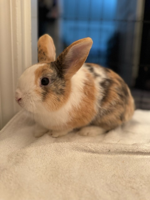 He has not shown any territorial behavior and would thrive in a peaceful home that allows him to build confidence at his own pace and could do well bonding with the right bunny friend.