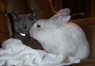 Once you understand what a rabbit is really like you can prepare to be amazed. Each rabbit has a individual personality. Some bunnies will come when called and pull at pant legs for attention. Most rabbits hate to be picked up but will happily hop up beside you on the sofa. Some will sit on your lap. Rabbits typically get along with other animals. Cats and rabbits can be good companions. Dogs and rabbits will groom each other. Rabbits are eternally curious and interested in their surroundings. They play with toys and they dance with joy. Rabbits can run agility courses just like dogs. However, rabbits kept outside never become family members and their owners are deprived of ever knowing their unique character.