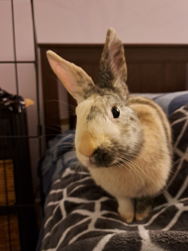After being found on Main Street, dumped, scared and alone, at just a few months old, little Tiger Lily was caught and brought to the VRRA by a kind person. She was named for her beautiful “tiger stripes” that make her quite a unique and gorgeous little harlequin bunny!
